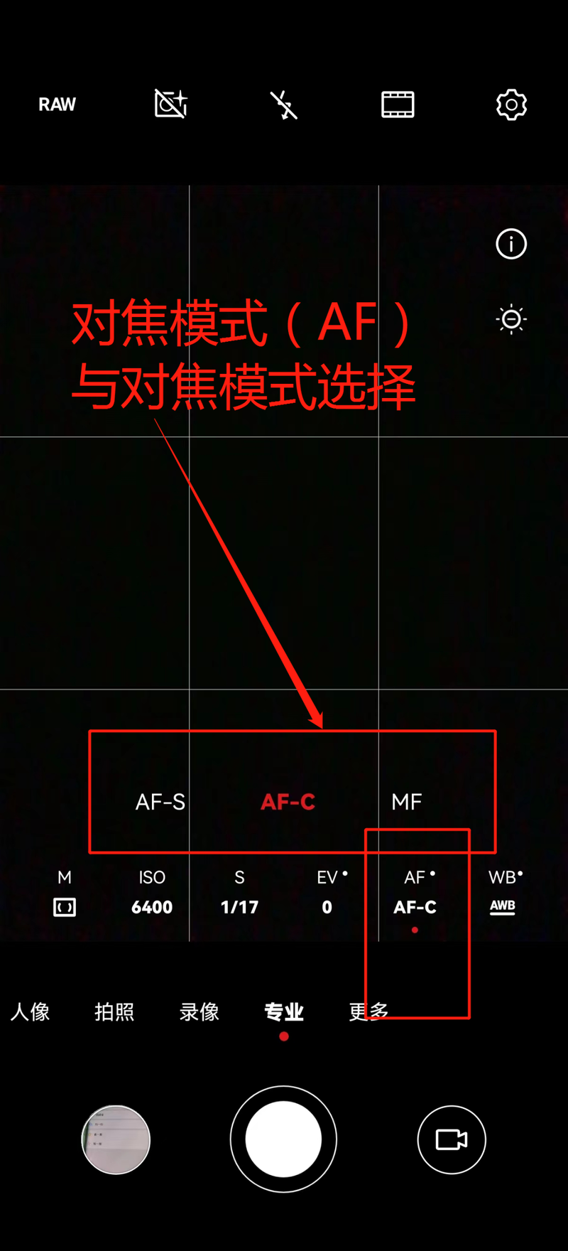 专业模式中的对焦方式