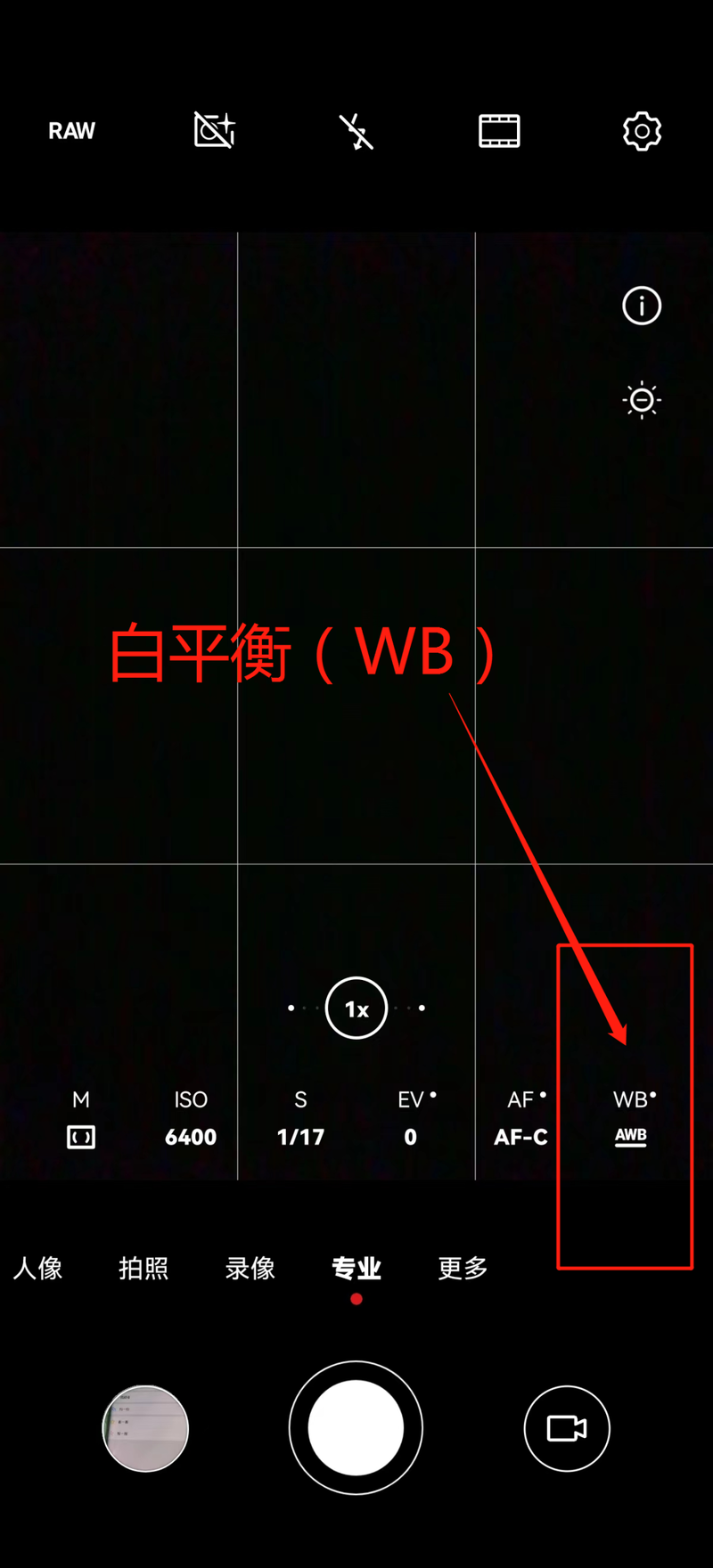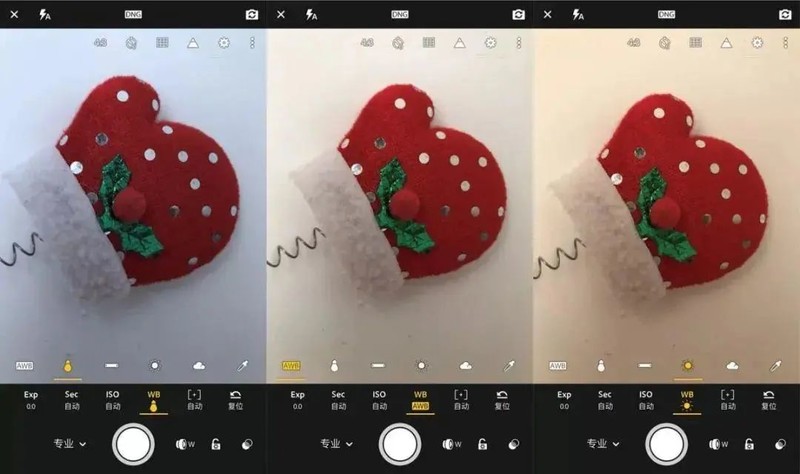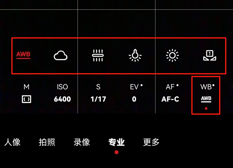 专业模式中的白平衡调节