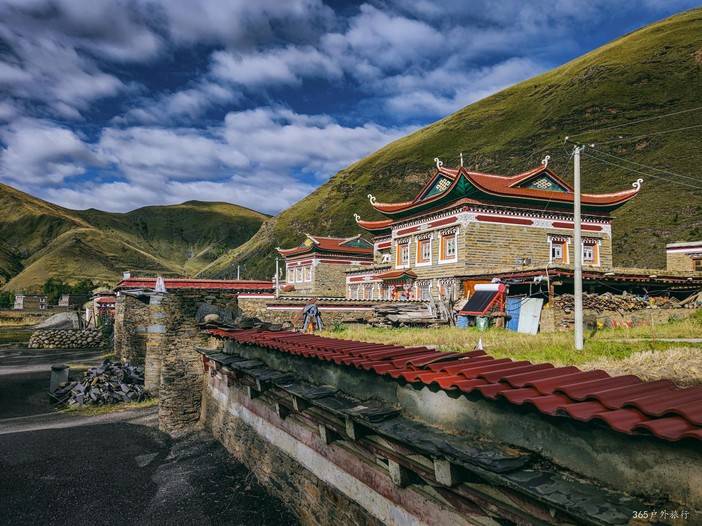 从八美出发,途经道孚,这里是 “藏房艺术之乡”,藏式民居雕饰精美、色彩艳丽,白墙红顶与青山相映,尽显藏地建筑美学。