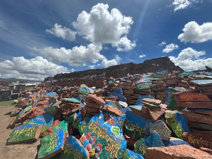 跨越省界抵达玉树,游览嘉那玛尼石经城,作为世界最大玛尼石堆,数十亿块玛尼石镌刻信仰,经幡林立,佛塔庄严。